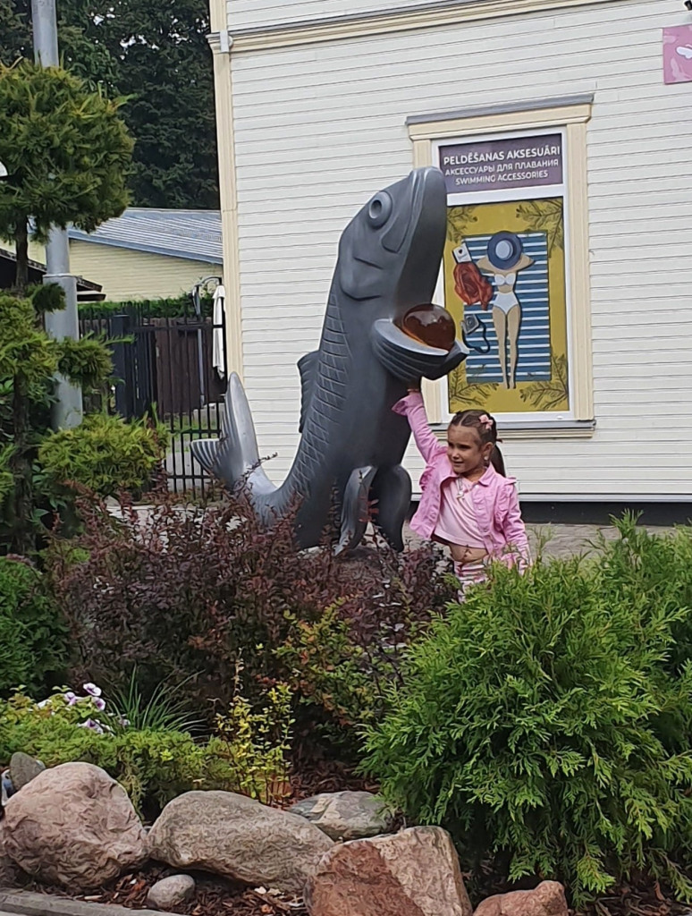 Sprat with Amber of Happiness Advertising object Sprat with amber of happiness, 2024. polyurethane, granite. Jurmala, Latvia. Hotel Lettia ← Previous